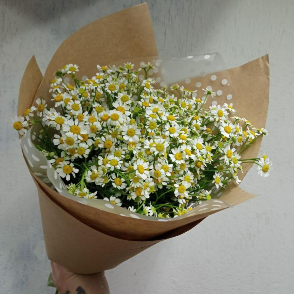Матрикария – 11 шт.крафтовая бумага – 2 шт.тишью белая – 1 шт.Атласная лента – 1 шт.