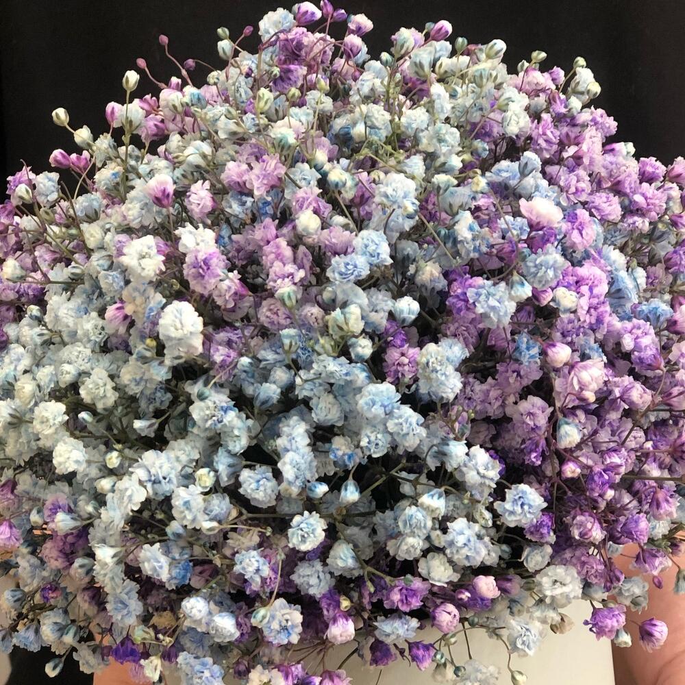 Композиция из гипсофилы в шляпной коробке «черника со льдом»