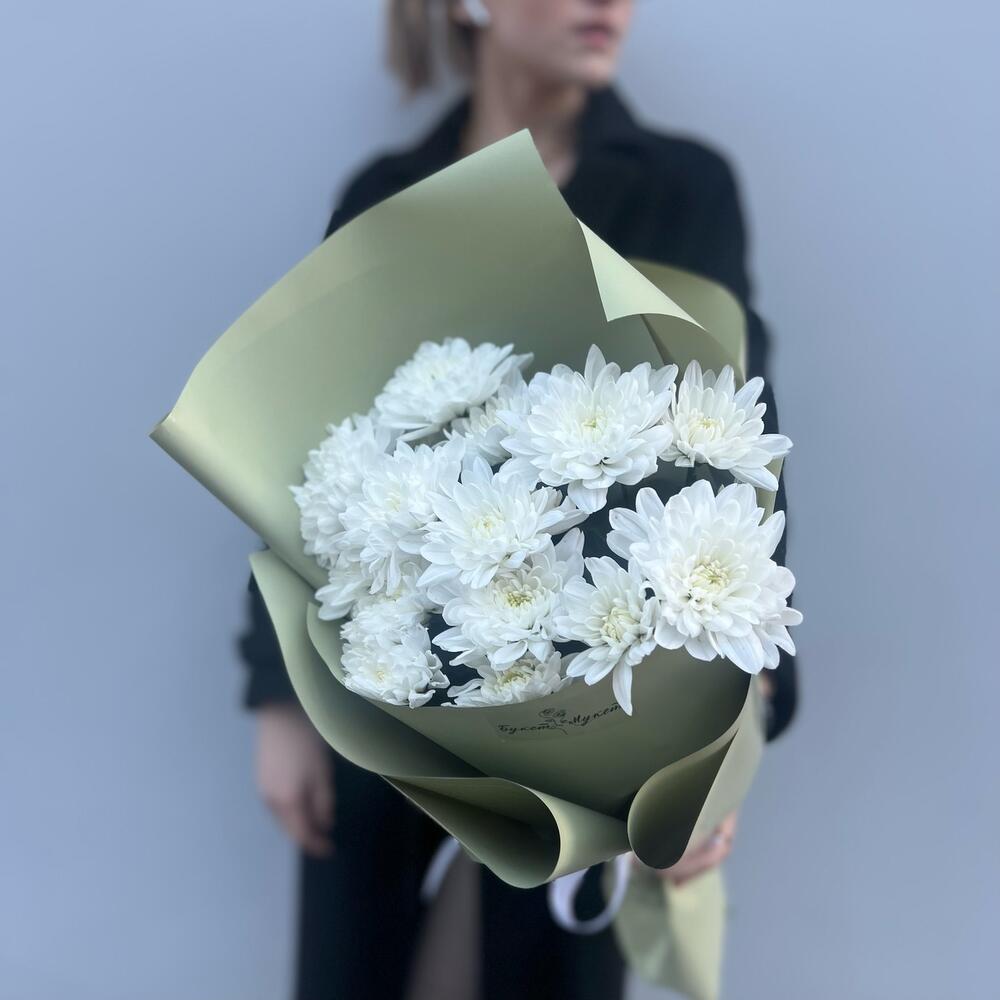Объемный букет с очаровательными белыми хризантемами!В зависимости от сезонности цветов, мы можем немного изменить состав букета, сохраняя гамму и настроение композиции.Так как все цветы индивидуальны, как люди, букеты с одним и тем же составом тоже могут немного отличаться, но мы стараемся максимально приблизиться к картинке. Мы — очень творческая команда и хотим все силы бросить на создание хороших букетов для вас, поэтому ответственность за доставку мы полностью передали в руки команды FlowWow. Поэтому мы только подготавливаем ваши заказы и фотографируем их для вас перед доставкой, а курьеров назначает и контролирует сам агрегатор. Будем благодарны за оценку именно нашей работы, качество композиции и цветка!