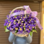 Ирис – 31 шт.Матрикария – 5 шт.Корзина плетеная – 1 шт.Оазис флористический – 1 шт.
