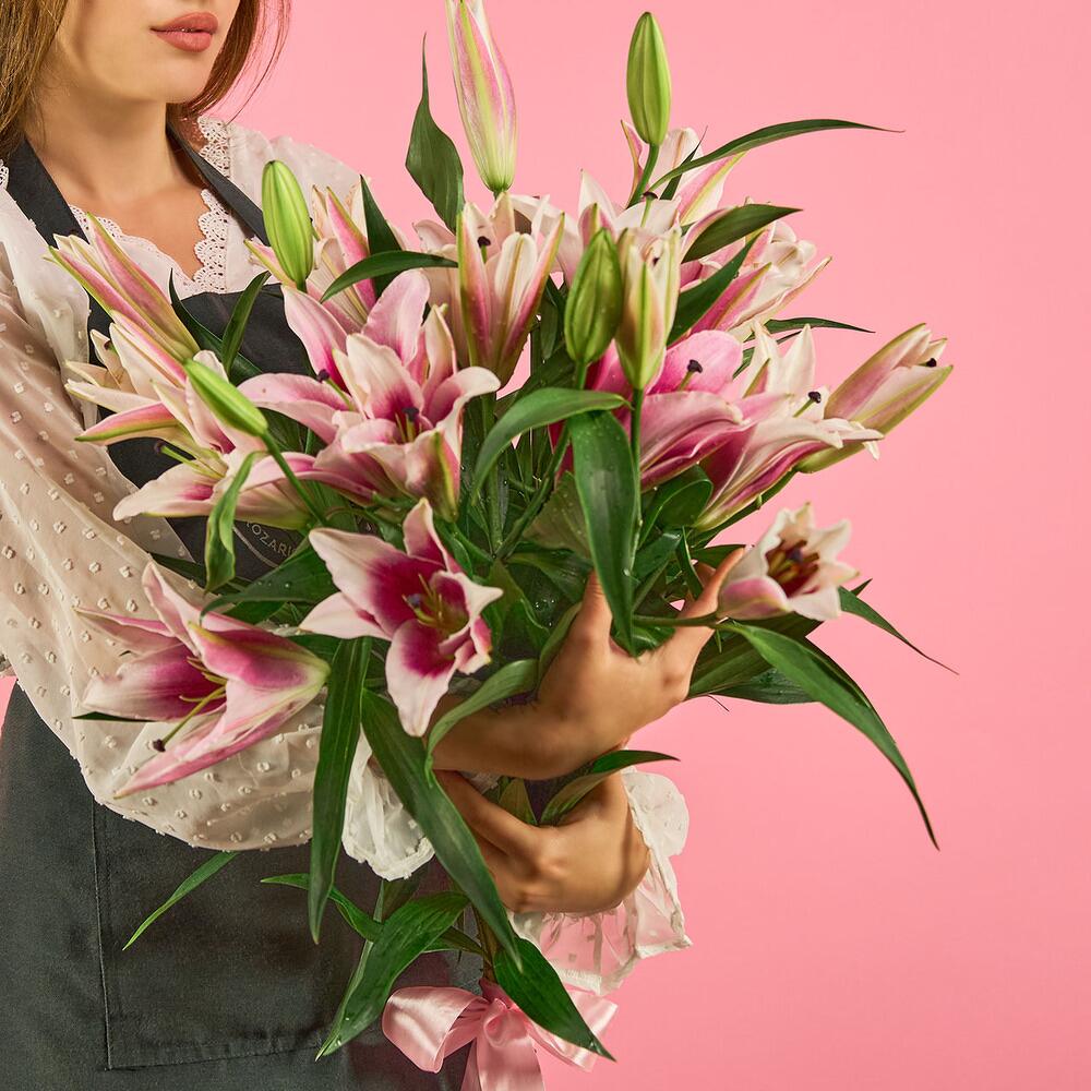 Лента атласная – 1 шт.лилия (розовый) – 7 шт.