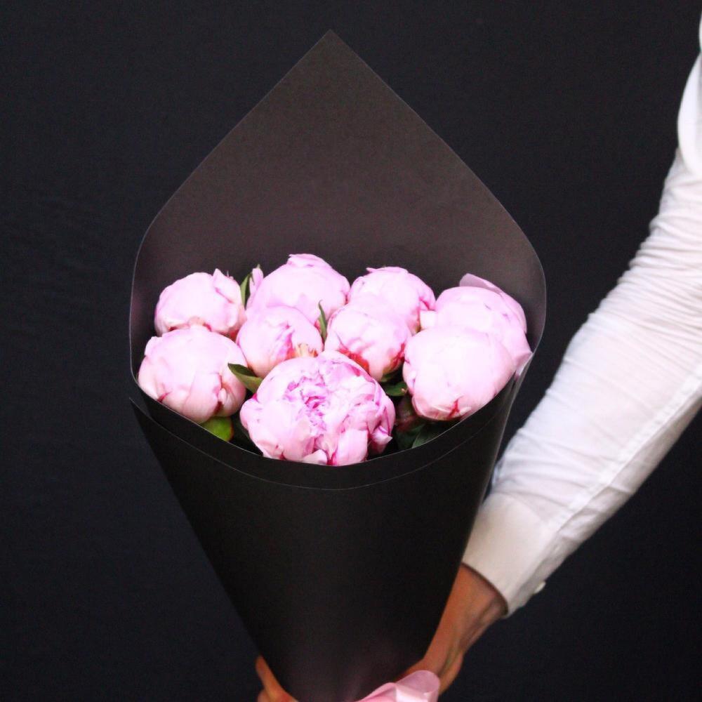Лента атласная – 2 шт.Пион Сара Бернар – 9 шт.Крафт дизайнерский – 1 шт.