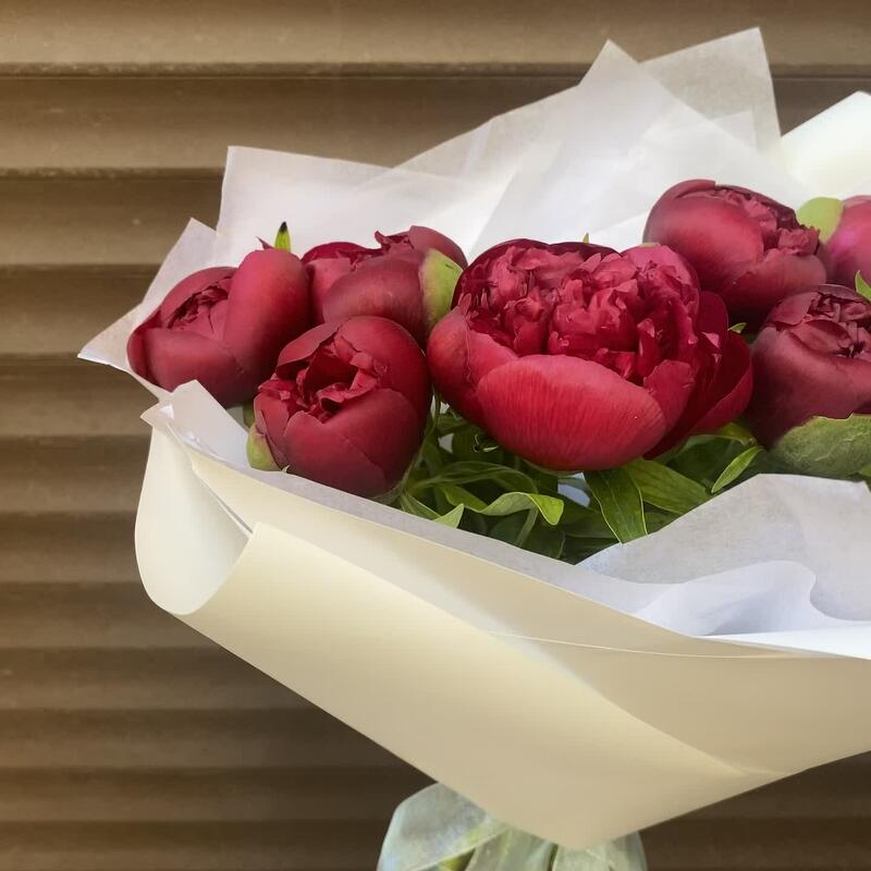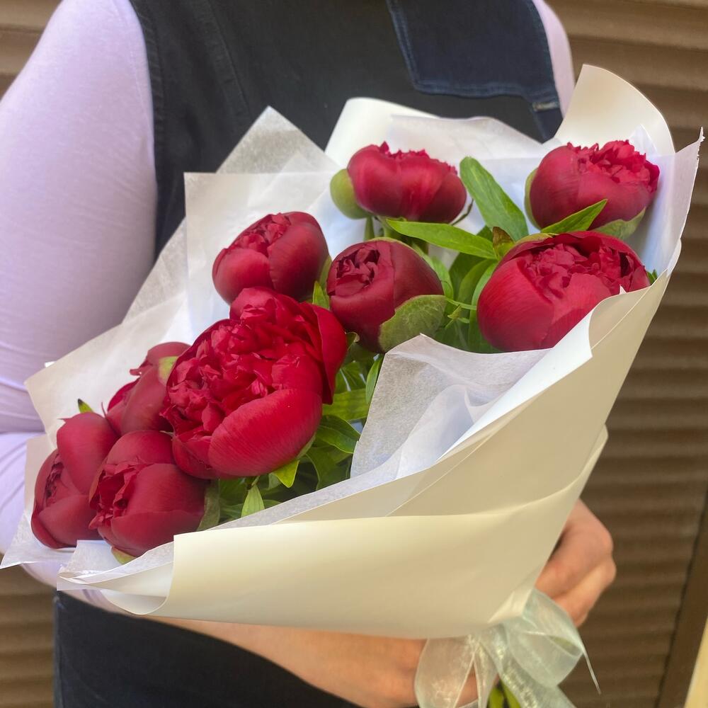 Букет из насыщенных красных пионов внесёт в вашу жизнь ярких красок, которых сейчас не хватает