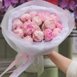 Открыточка с вашими пожеланиями – 1 шт.Шоколадка – 1 шт.Транспортировочная коробка – 1 шт.Розовый пион – 13 шт.Дизайнерская упаковка – 1 шт.подкормка для срезанных цветов – 1 шт.инструкция по уходу за цветами – 1 шт.