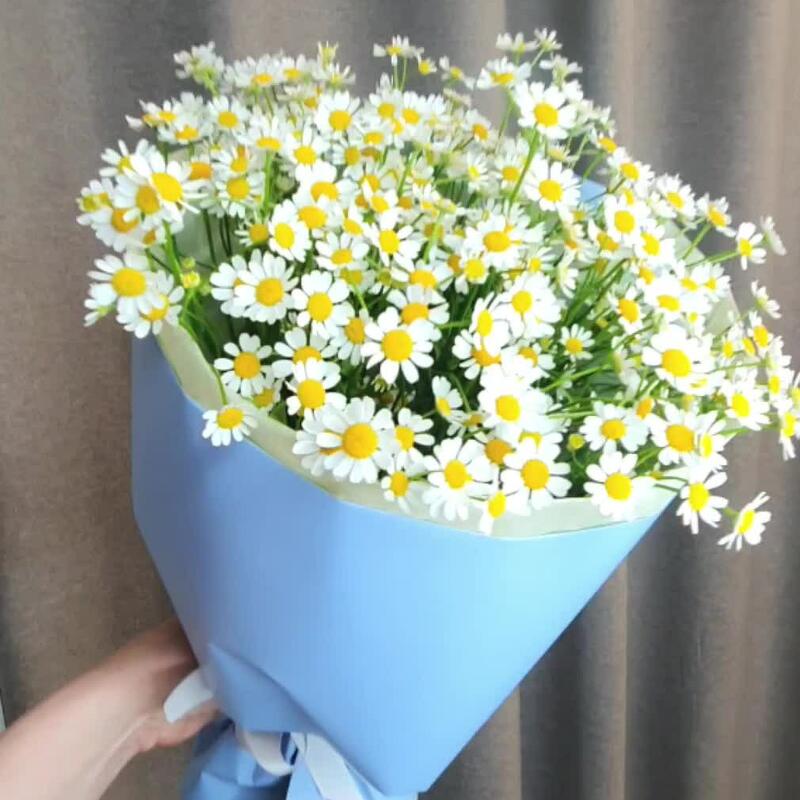 Упаковка дизайнерская – 2 шт.Матрикария (Ромашка Камила) – 10 шт.Лимониум – 1 шт.