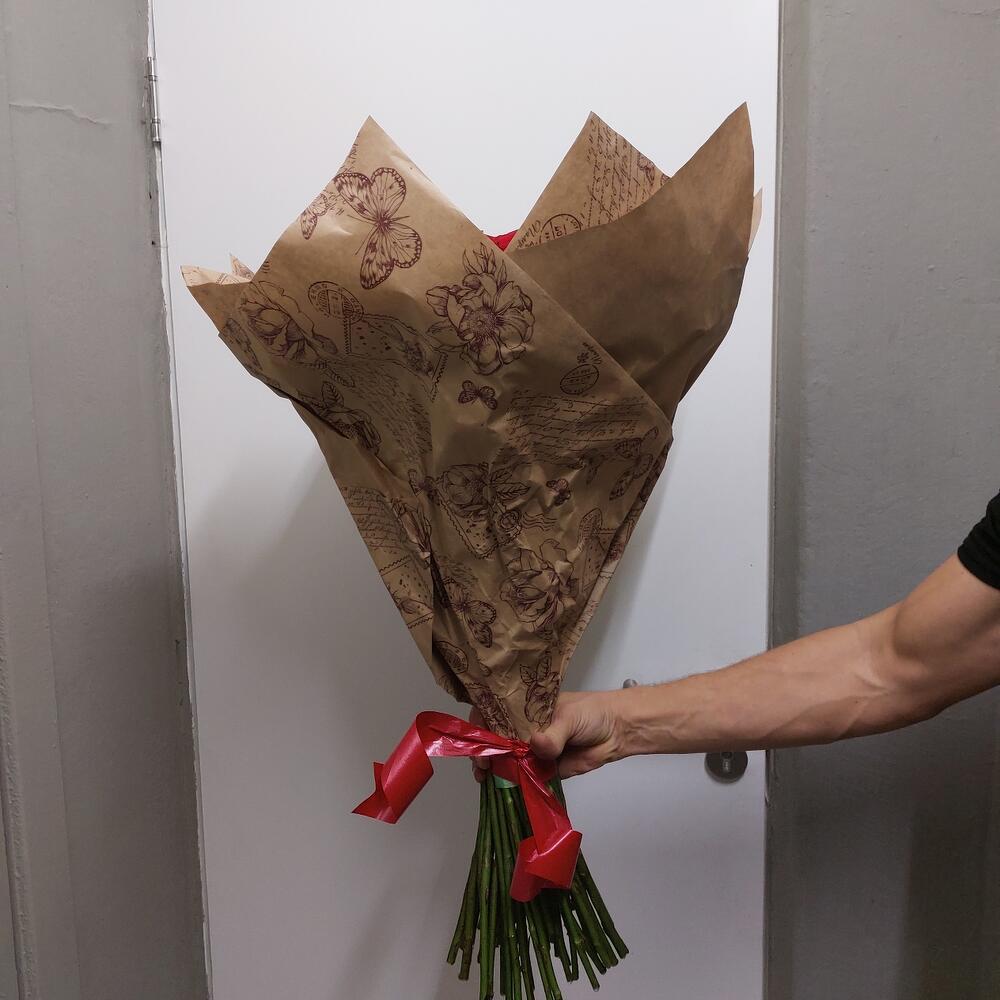 Роза эксплорер 70 см эквадор – 57 шт.бумага крафт – 1 шт.Лента атласная – 1 шт.