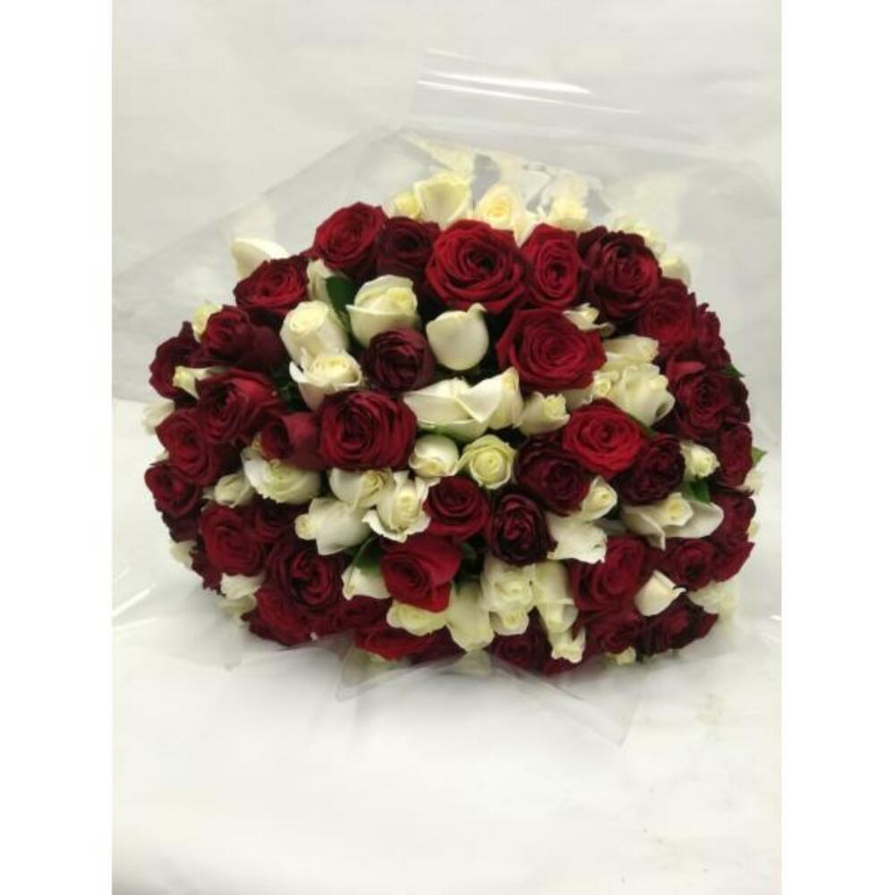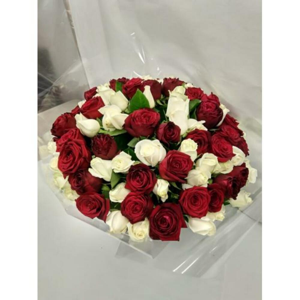Букет из 75 красных и белых роз, длина 60см