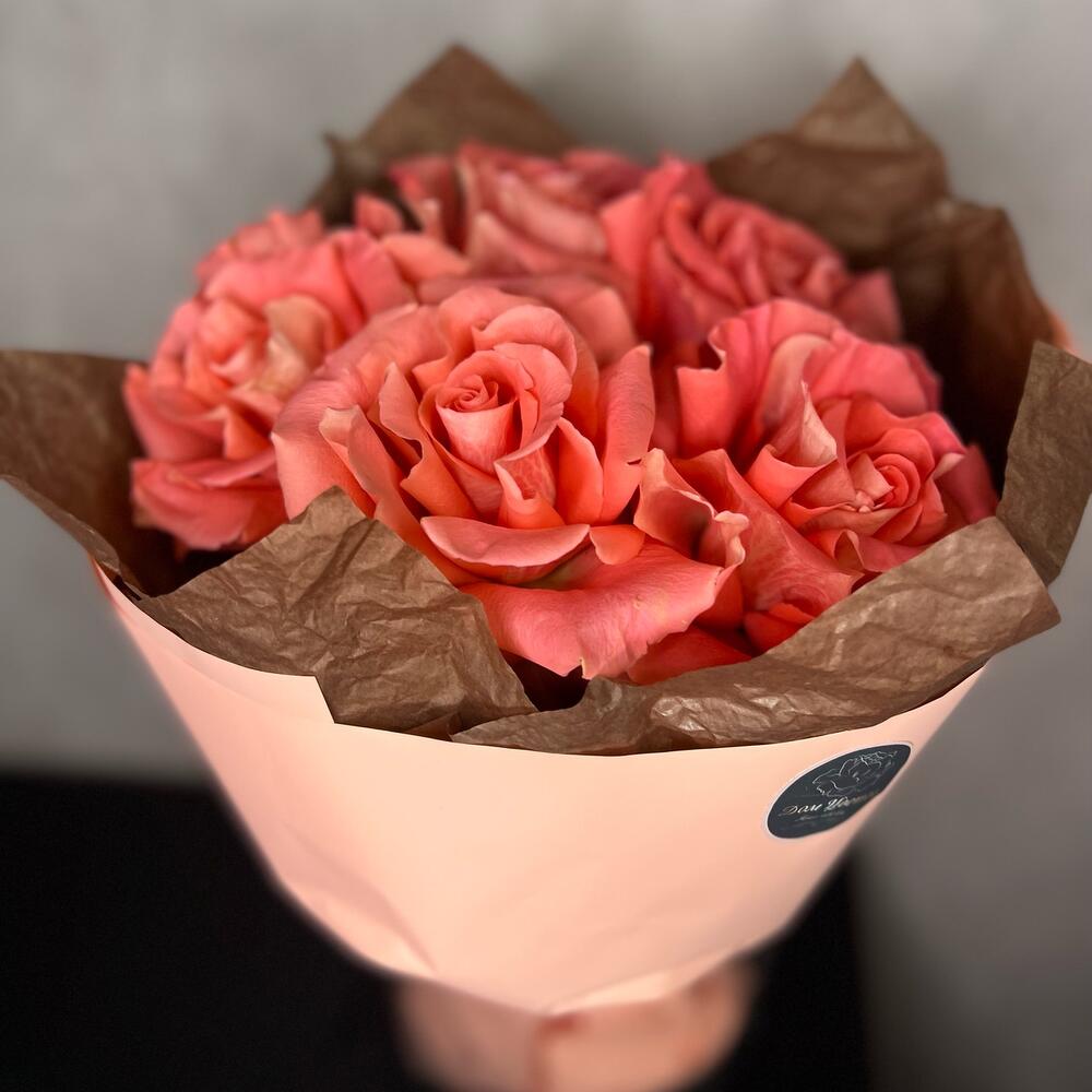 Роза – 5 шт.декоративная упаковка – 1 шт.Тишью – 1 шт.Атласная лента – 1 шт.