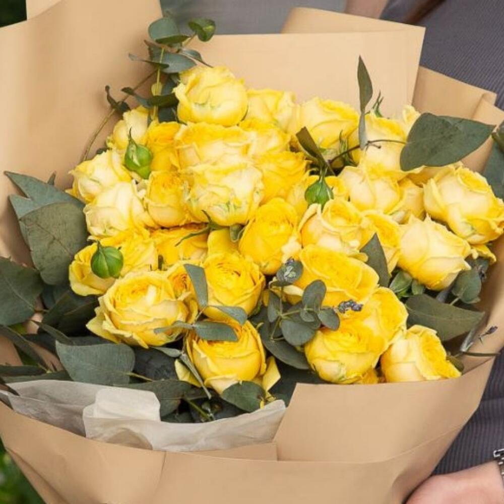 Эвкалипт – 5 шт. Кустовая роза – 10 шт.
