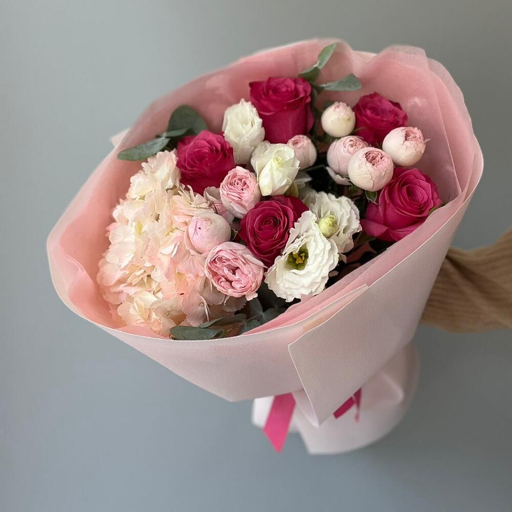 Гвоздики, Кустовые розы, Пионовидные розы, Розы
