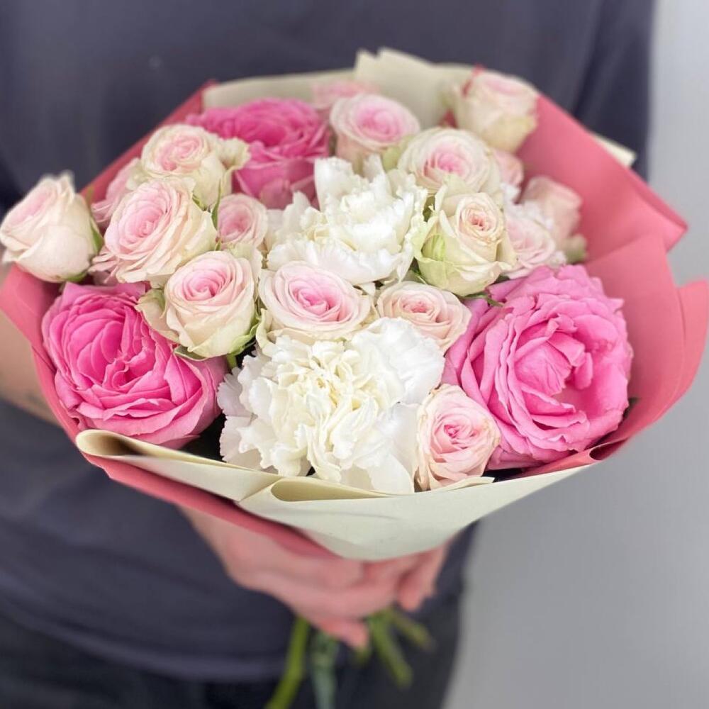 Гвоздики, Кустовые розы, Пионовидные розы, Розы