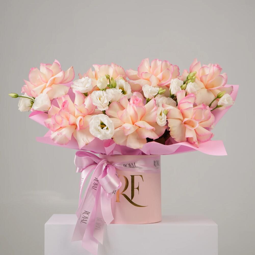 Альстромерии, Гортензии, Кустовые розы, Лизиантусы, Розы, Хризантемы