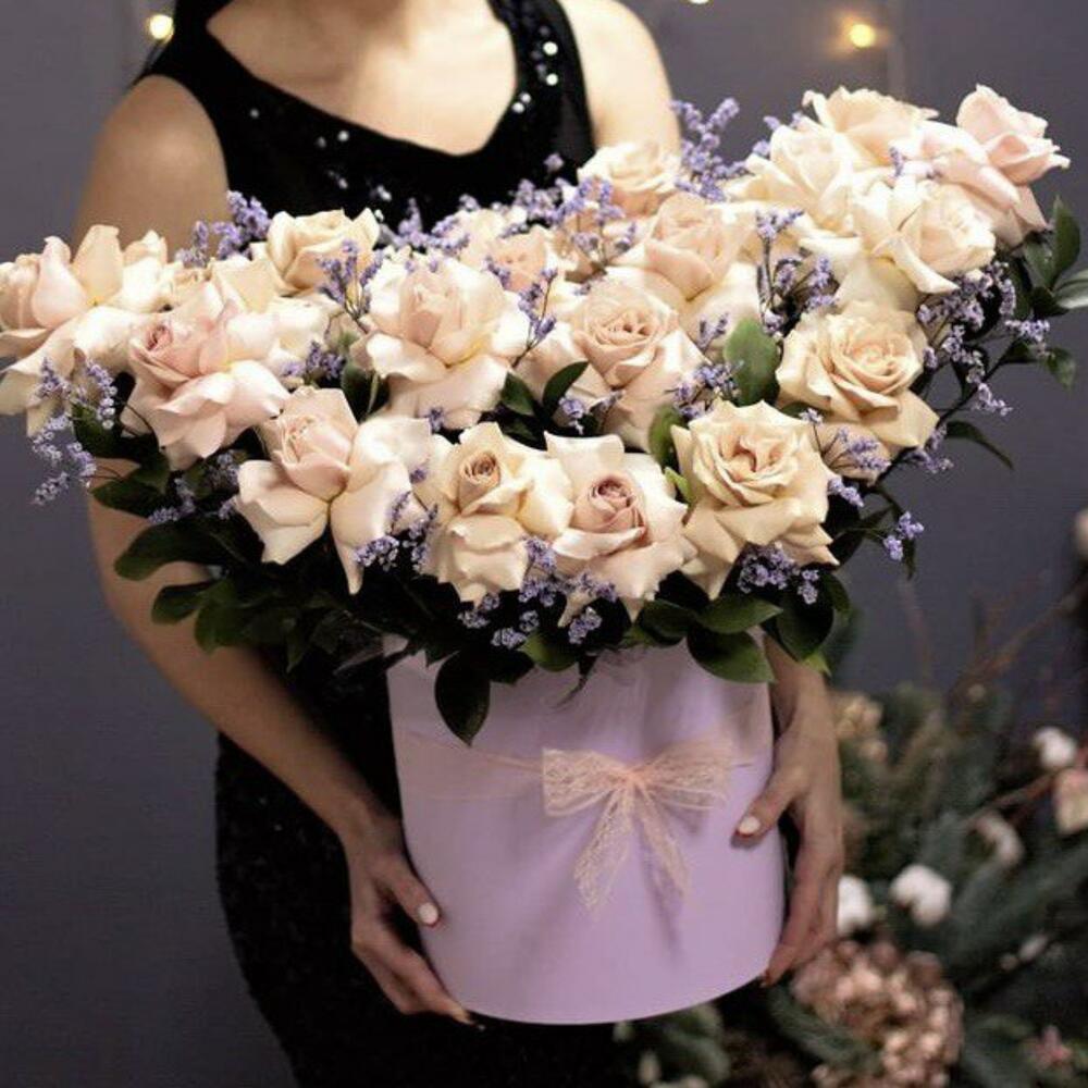 "В твоих глазах": нежная шляпная коробка с французскими розами