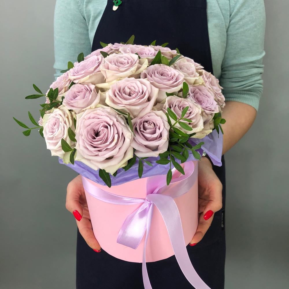 Роза – 29 шт.Шляпная коробка – 1 шт.Пиафлор (оазис) – 1 шт.