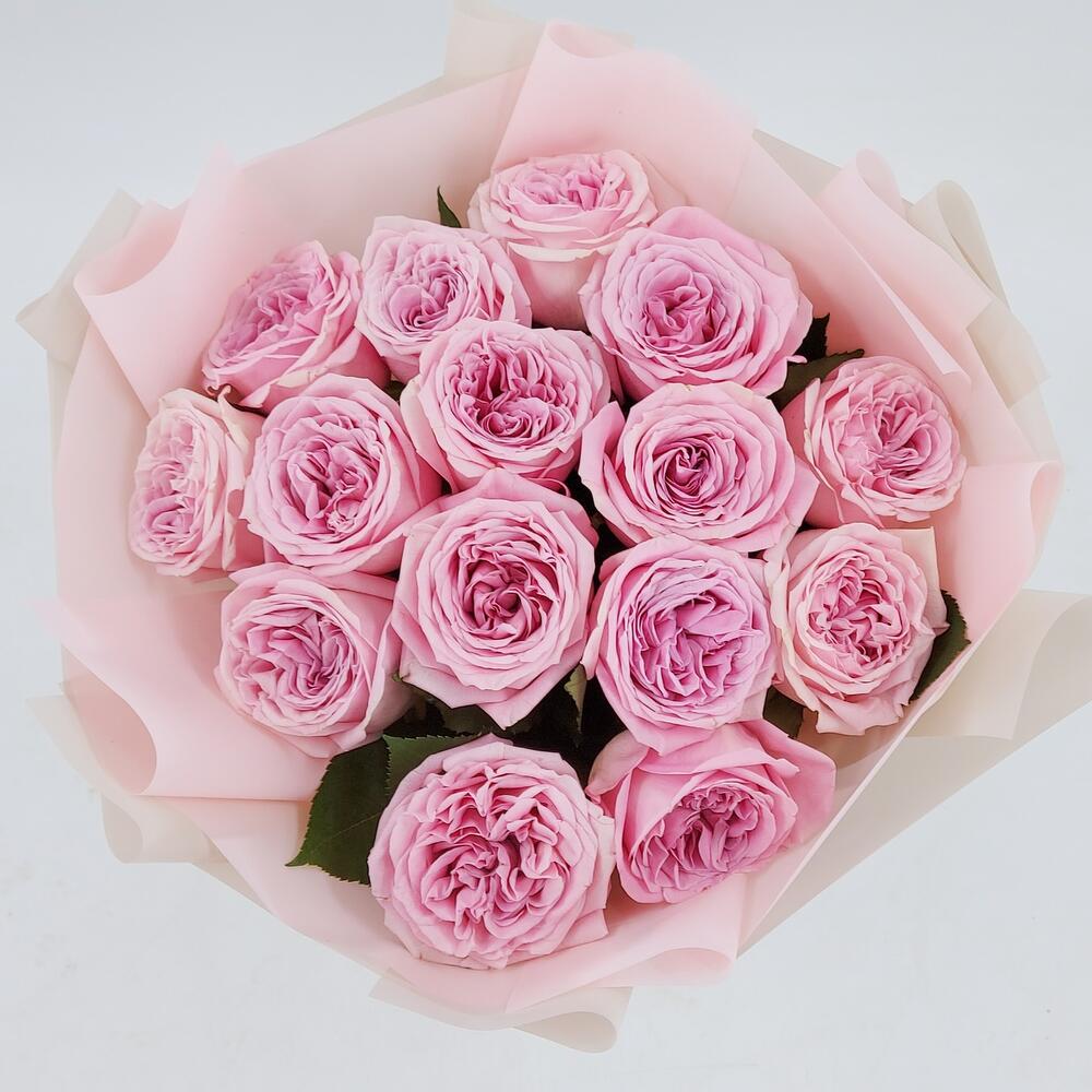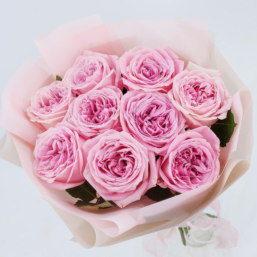 Роза пионовидная – 9 шт.Упаковка дизайнерская – 1 шт.