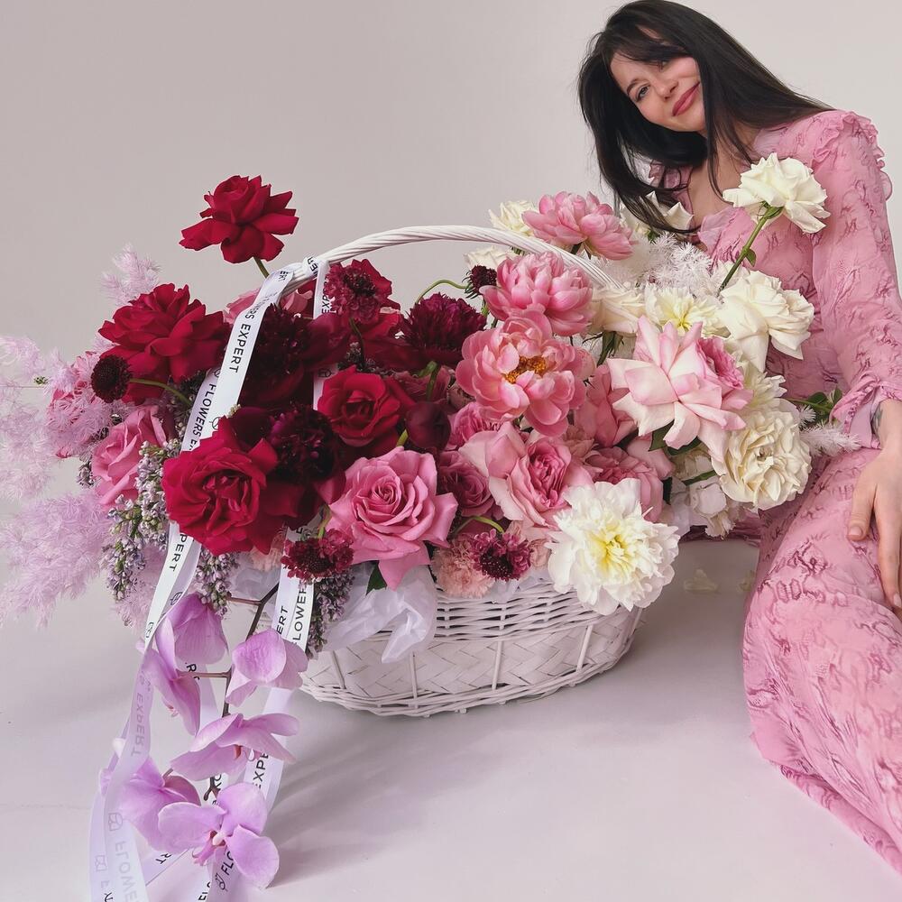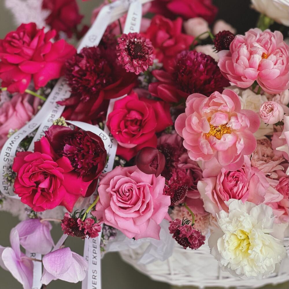 Огромная корзина с пионами и орхидеей “VERONA”