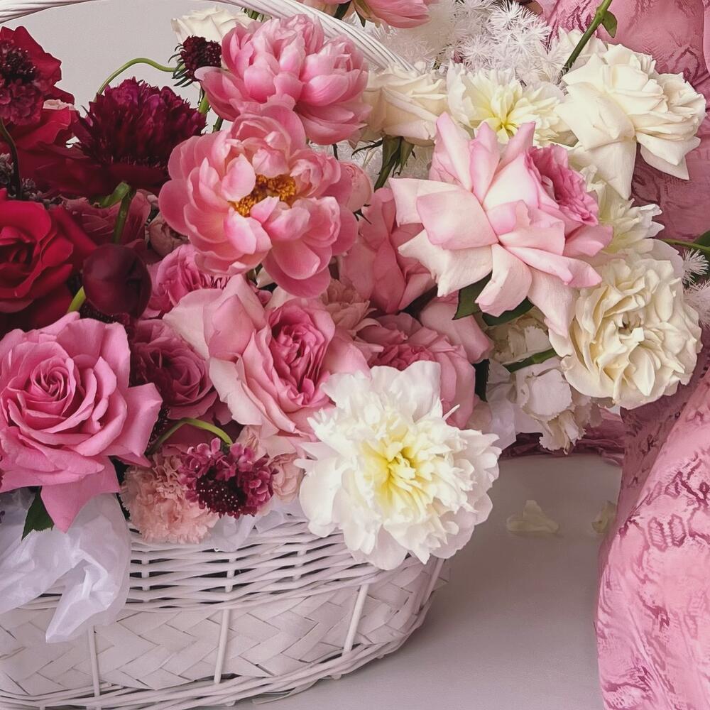 Метки: от 5000 руб, цветы в корзине