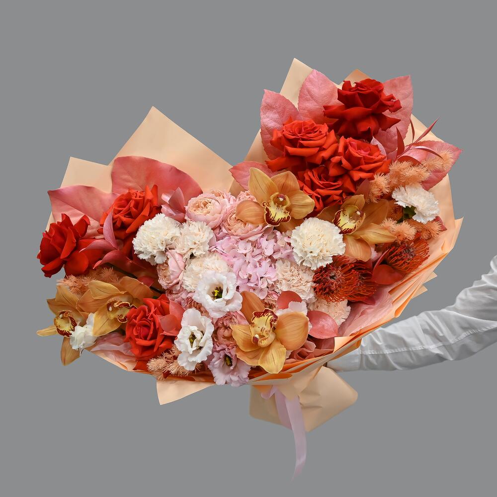 Категорий: Гвоздики, Гортензии, Кустовые розы, Лизиантусы, Пионовидные розы, Розы
