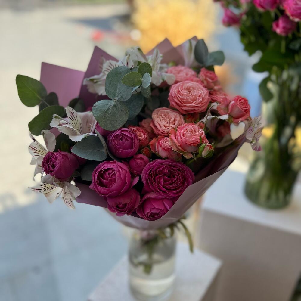 Гвоздики, Кустовые розы, Лизиантусы, Пионовидные розы, Розы